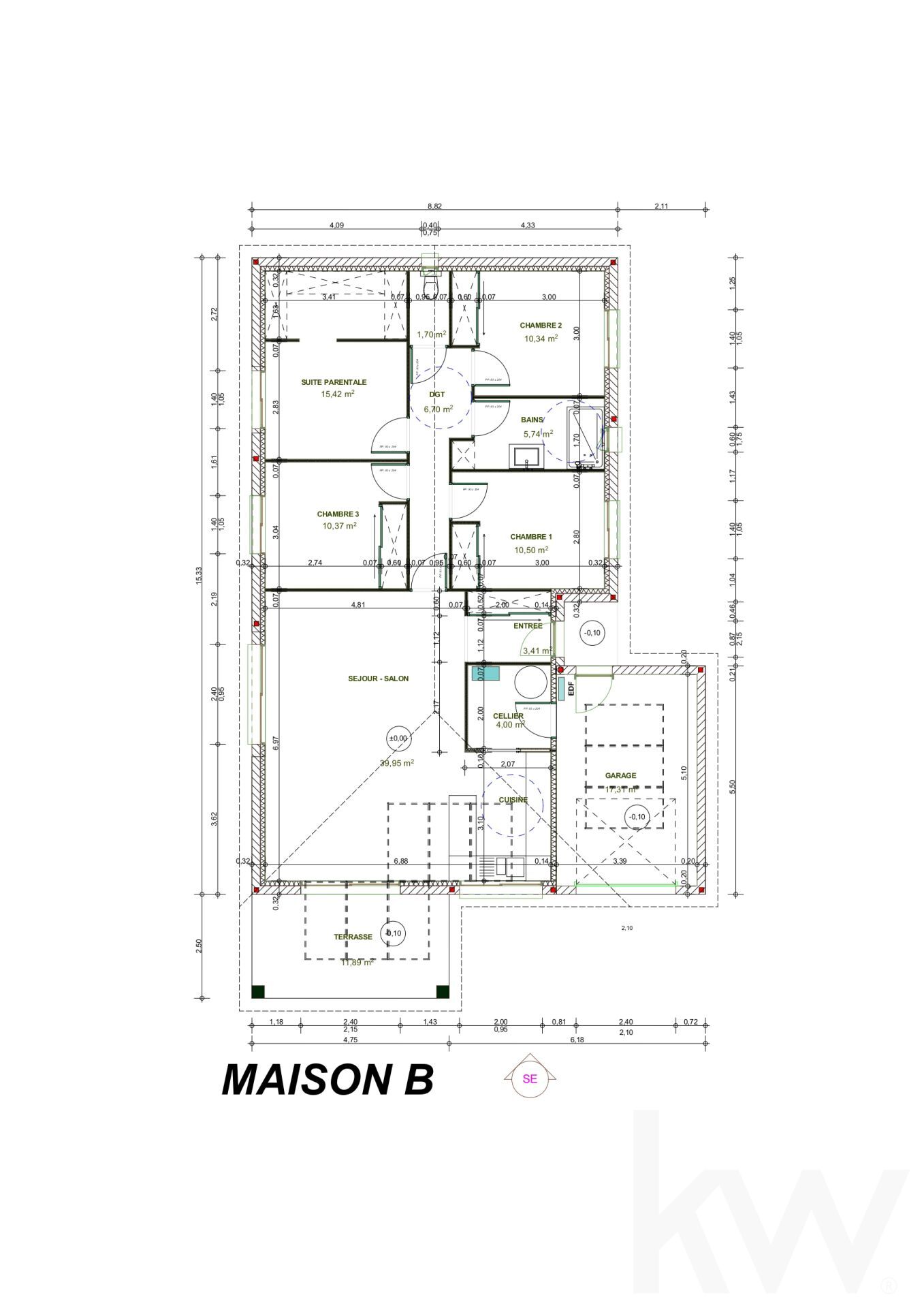 Surface de 125 m² dont un garage isolé et carrelé de 17 m²
